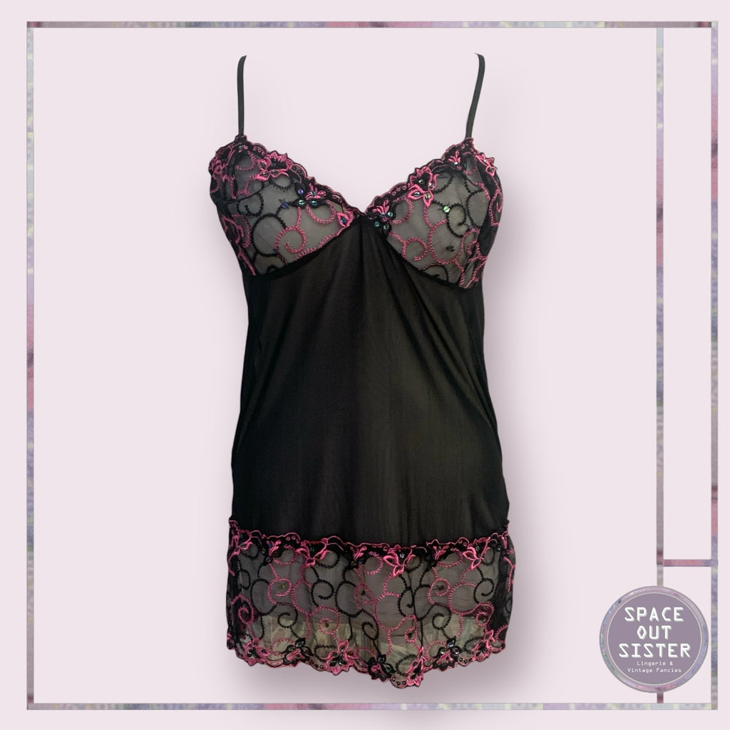 Slip into the Vintage Evie Nightdress and let your dreams take a stylish spin! This cute black beauty features a cheeky semi-sheer design with playful pink detailing (because who doesn’t love a pop of color?). Perfect for those nights when you want to feel fab while snoozing!