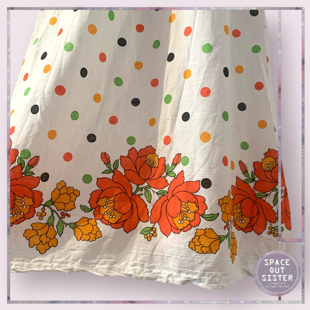 This vintage-inspired nightdress boasts a beautiful poppy and dot print, creating a charming and classic look. Made with a full-length design, it offers both comfort and style for a perfect night's sleep. Embrace the elegance and nostalgia of the past with this lovely nightdress.